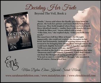 Jason and Donovan had taken a huge risk when they left their pack in the hopes of finding their mate. April is everything the brothers had ever dreamt about, but she’s even more special than they know. The battle between their enemies on the other side of The Veil comes crashing into their lives at the worst possible time, just when Jason and Donovan now have something precious to lose.